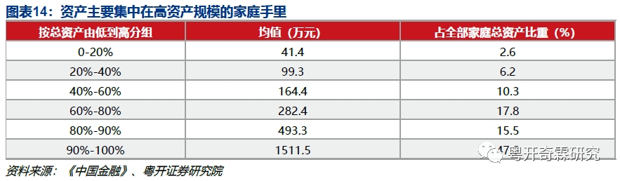 二是根据中国人民银行2020年4月发布的城镇居民家庭资产负债调查结果,2019年中国城镇居民家庭总资产均值为317.9万元,中位数为163.0万元。两者相差154.9万元,表明居民家庭的资产分布不均。