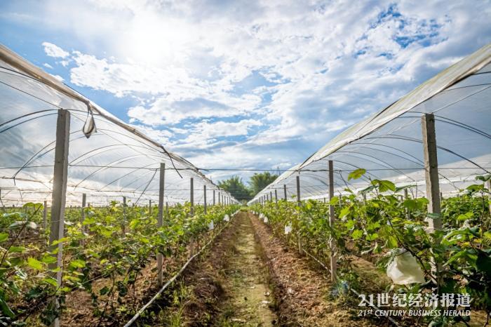 蔬菜基地主要种植韭菜花、韭黄菜,还有火龙果、葡萄。图中是葡萄园。