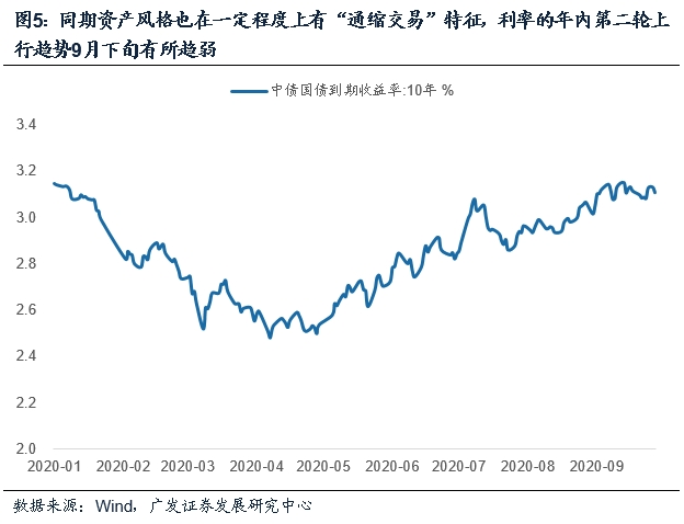 同期资产风格也在一定程度上略有“通缩交易”特征,利率的年内第二轮上行趋势9月下旬有所趋弱。