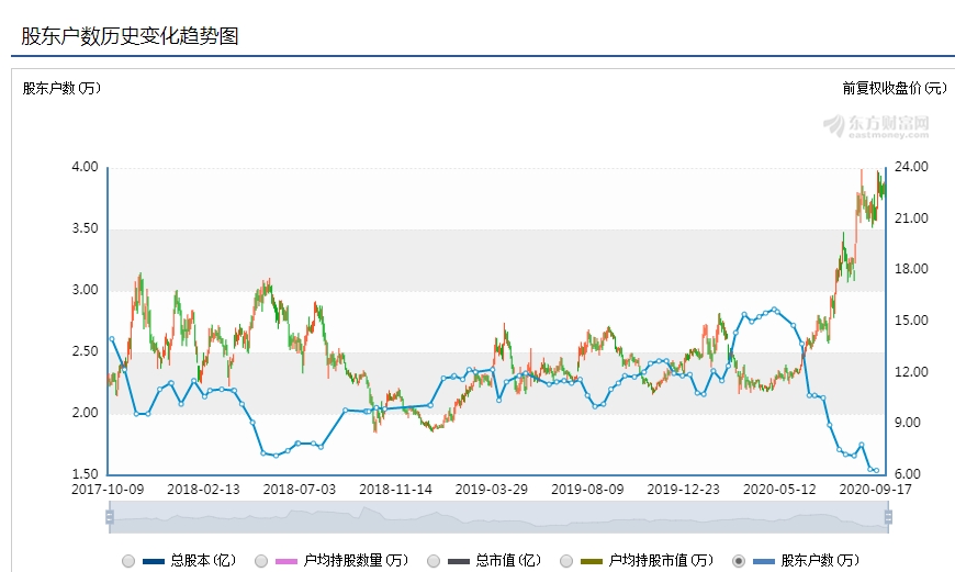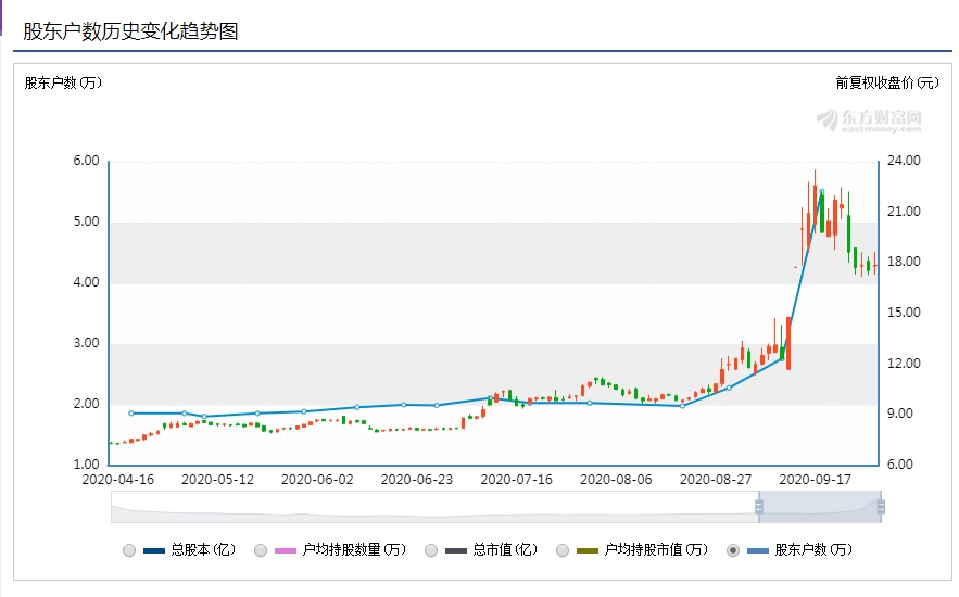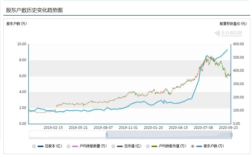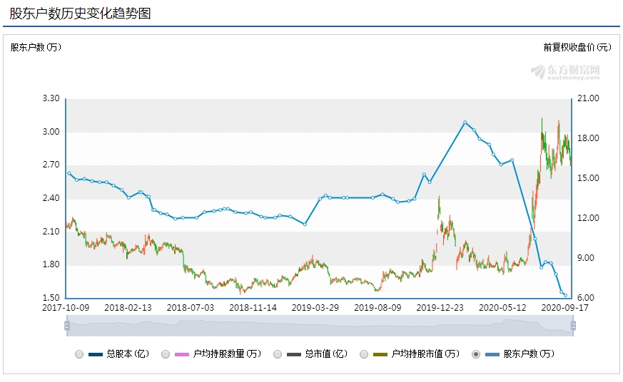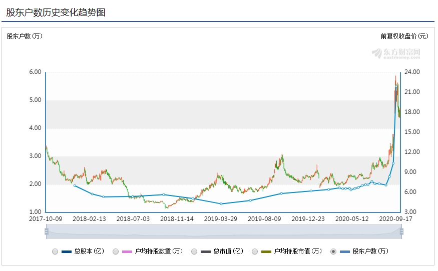 而被称为药中茅台的长春高新,虽然此前也是股东户数和股价齐涨的局面,但当股东户数增速明显超过股价增速后,尤其是截至今年9月21日的股东户数较二季度大增超30%,三季度最新股东户数较二季度末增长了2.3万人!
