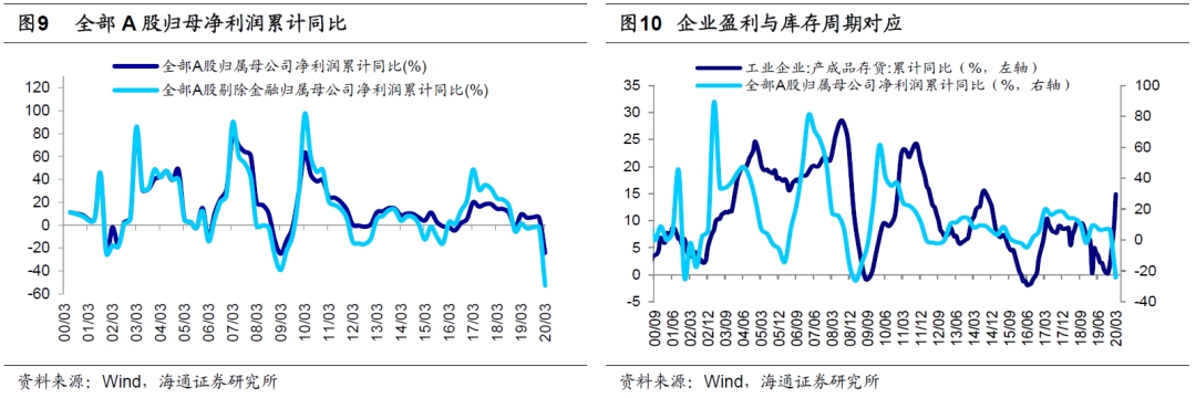 基本面温和复苏中。8月工业企业利润当月同比为19.1%,工业企业增加值当月同比5.6%,这些高频数据均显示基本面正在温和复苏。我们预计后续基本面数据将继续改善,基本面回升源于两大动力:一是经济周期因素。由于库存变化反映了市场需求预期和企业生产状况,和企业盈利正相关,通过分析库存周期的变动我们可以追踪企业盈利所处的周期区间。回顾历史,2000年至今市场共经历了5轮完整的库存周期,平均一个周期历时39个月,按照历史经验推算,最近一轮库存周期本来在19年10月见底,19年11-12月工业企业利润回升逐步验证了周期规律。但是,疫情冲击使得基本面 20Q1再砸深坑,数据断崖式下跌,20Q1GDP同比-6.8%,全部A股归属母公司净利同比-24%,均接近09Q1历史最低点。年初疫情爆发打断了盈利见底回升的节奏,现在国内疫情已经得到控制,经济活动将逐步向正常水平靠拢,前期暂缓的生产和消费有望下半年得到回补,基本面数据有自我回升的动力。二是对冲政策发力。为应对经济下行压力,我国也积极采取了措施。政府工作报告虽然没提GDP目标,但财政赤字和就业目标隐含名义GDP同比5.4%,实际GDP同比3%左右。今年赤字率拟按3.6%以上安排,赤字规模比去年增加1万亿元,此外,今年还将发行1万亿元抗疫特别国债以及3.75万亿地方政府专项债(较去年增加1.6万亿),因此整体广义赤字较去年增加了3.6万亿。我们预计实际上广义赤字率从去年5%可能升至8%。对比09年狭义、广义赤字率分别为2.2%、3.1%,目前这些政策已逐步见效,最新高频经济数据已持续回升。随着各项政策逐步落地,推基本面数据回升。从盈利回升空间看,历史经验显示盈利回升周期一般持续6~7个季度,故我们预计这轮盈利回升期有望持续到明年年底,预计A股下半年利润同比增速有望达到15%,2020年达到0-5%,2021年达到15%。