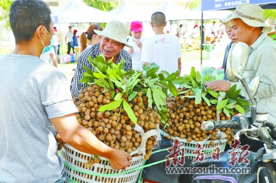 在潮州饶平县举行的消费扶贫系列活动上,农户载着龙眼赶到现场。 资料图片