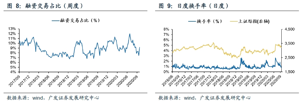 (1)融资交易占比:上周为9.2%,前一周为7.5%;