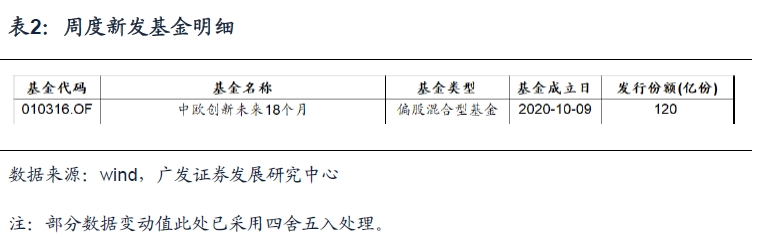(3)新发基金(股票型+混合型):上周新发基金规模为120亿元,前一周新发基金规模约519亿元,新发基金规模大幅回落。