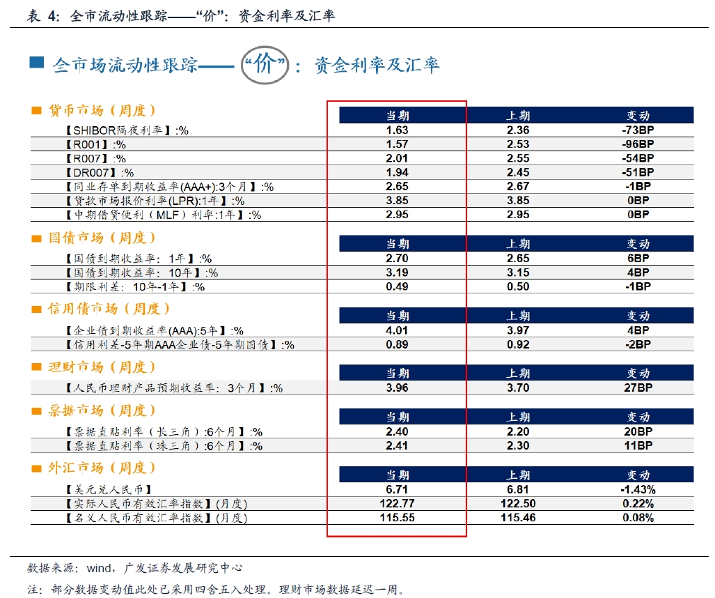 三、全市场流动性跟踪——“价”:资金利率及汇率