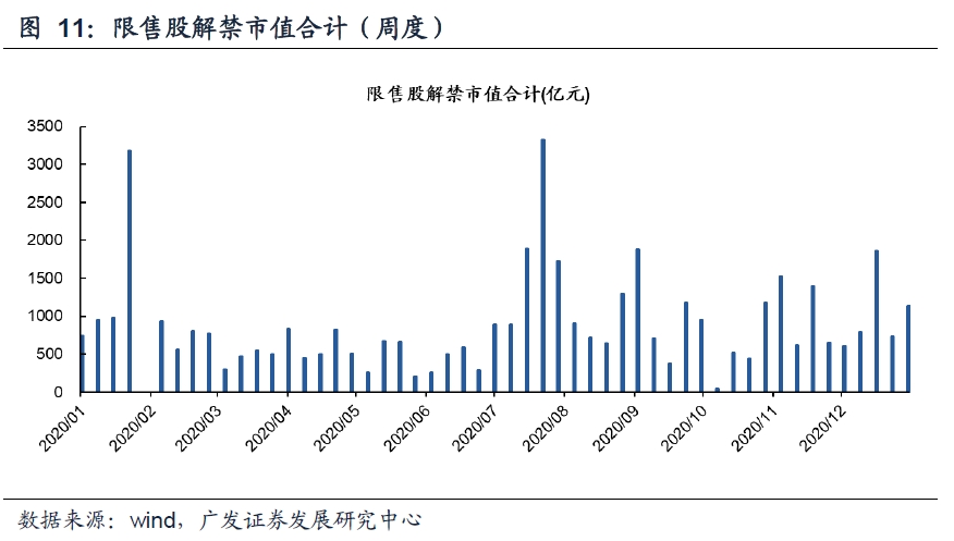 限售股解禁:上周限售股解禁1168亿元,前一周限售股解禁380亿元。预计本周限售股解禁947亿元。