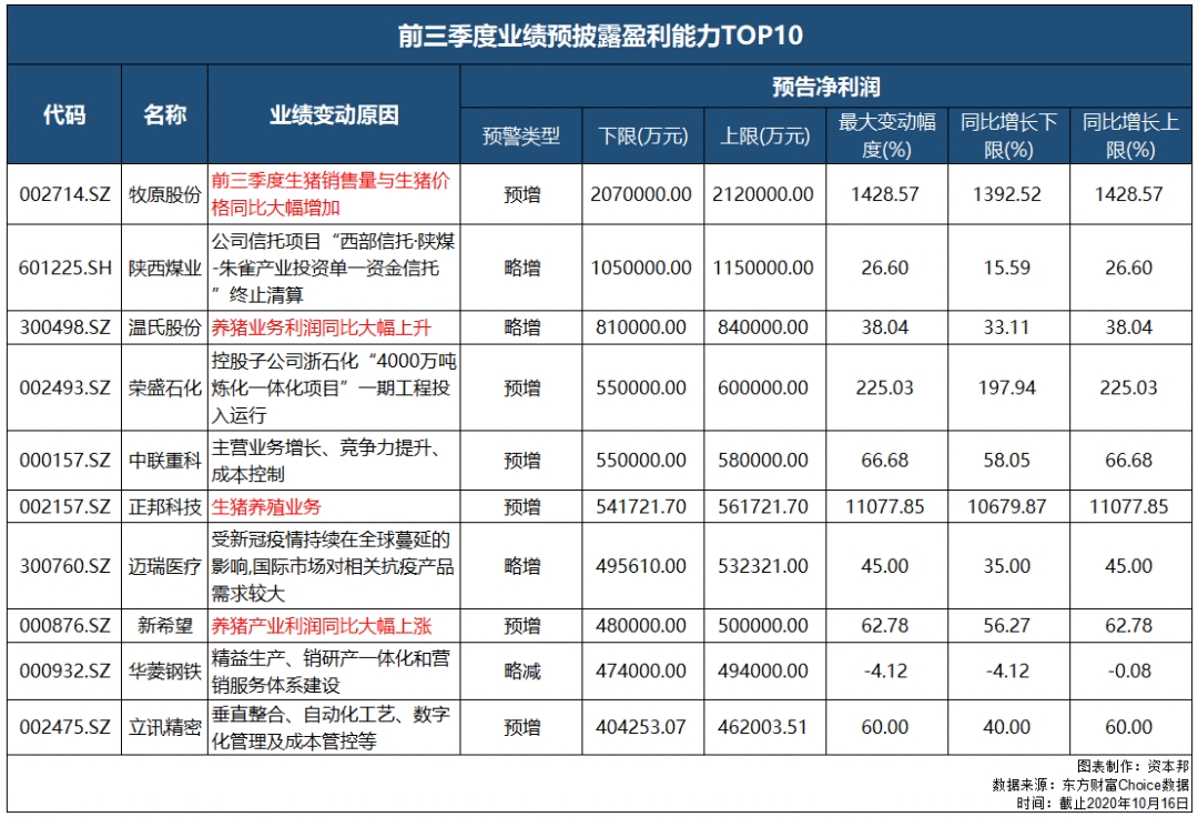 A股三季报来袭!4家猪企跻身营收TOP10,万达电影现身亏损队伍