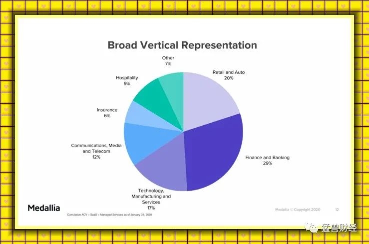 Medallia客户的流失率比较低。Medallia的大多数客户都是知名的大公司,企业预算庞大,在软件订购上花费巨大,比如汽车和零售业的客户。虽然现在这些大客户正面临压力,也给Medallia构成了一个风险因素。但随着2020年的推进,汽车、零售领域的情况似乎有所改善。总体而言,高流失率是不可能的。
