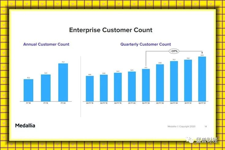 尽管如此,Medallia在SaaS方面的收入同比增长了25%,总收入同比增长了21%,并在第二季度增加了57个企业客户,截至第二季度共有839个企业客户。