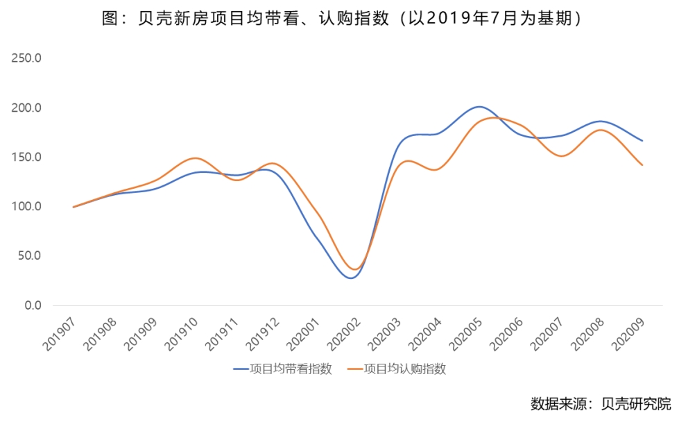 贝壳百城新房市场报告丨市场进入年底观望期,带看认购比拉升
