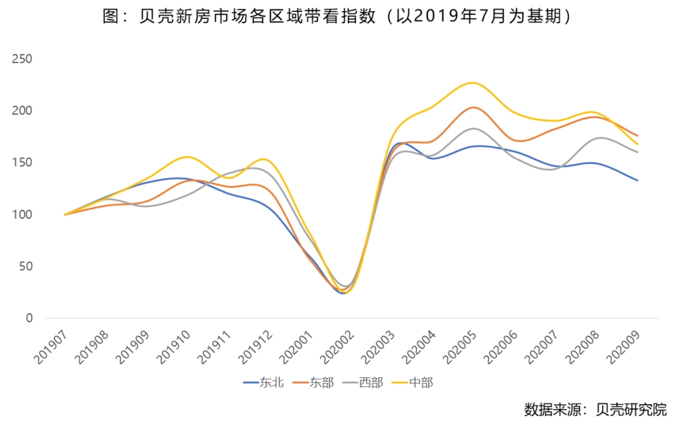 3、东部、西部地区市场热度有所反弹,中部地区10月市场可期