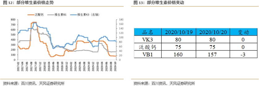 泛酸钙:市场回落至低位,下游企业补库意愿增加。欧洲市场报价8.5-9欧元/公斤。