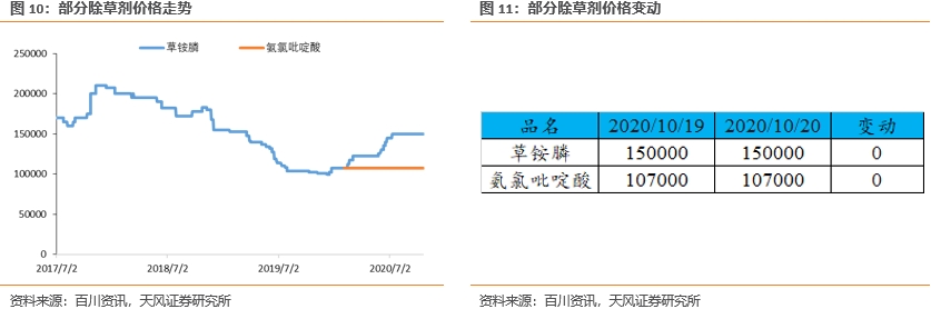 10月20日,百川盈孚草铵膦现货价格指数(BGLI)为150000,上涨0,涨幅0%;95%草铵膦生产商报价至15-16万元/吨,实际成交价至15万元/吨。采购市场观望,谨慎询盘。四川主流供应商开工稳定,正常接单。从市场反馈看,华北供应商目前尚未商业化投入市场产量。(资料来源:百川资讯)