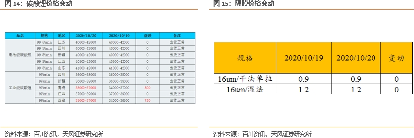 10月20日,正极材料市场陆续恢复,三元材料水平维持稳定,价格不变。今日三元材料523市场报价在11.9万元/吨,较昨日持平;三元材料622市场报价在13.9万元/吨,较昨日持平;三元材料811市场报价在16.5万元/吨,较昨日持平;三元材料111市场报价在14.6万元/吨,较昨日持平,市场来看,国内三元正极材料价格维持震荡行情,市场报价较节前变化不大。下游需求方面,动力电池市场需求表现火热,带动龙头三元材料企业产量持续走高。预计三元材料后市依旧平稳为主。(资料来源:百川资讯)