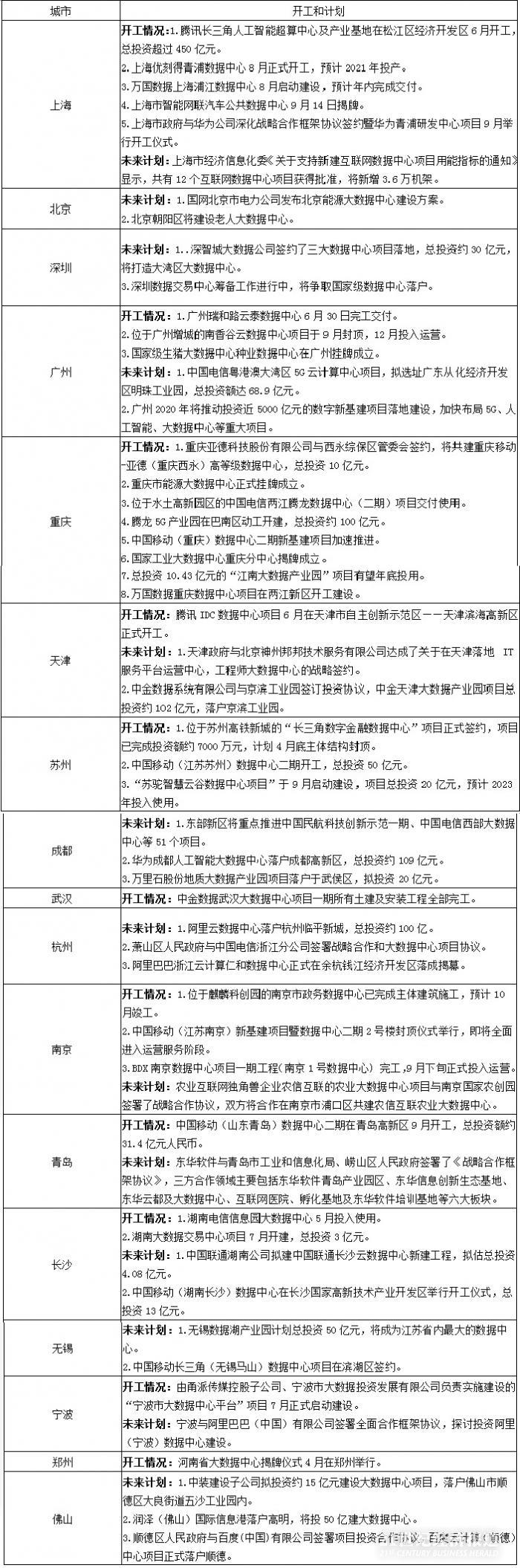 广州则宣布,位于广州增城的南香谷云数据中心项目于9月封顶,12月投入运营。
