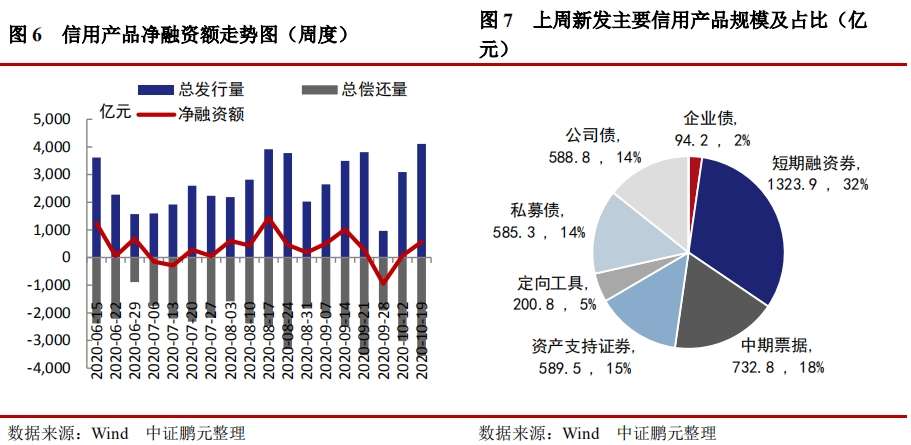 上周信用产品偿还规模为3,552.23亿元,较前一周上升17.64%。上周净融资562.99亿元,较前一周上升。