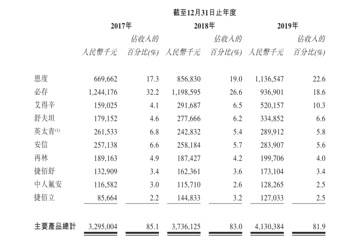 此外,先声药业是国内药企之中少数拥有一级一类新药的企业,同期其一类创新药恩度和艾得辛收入占总收入比例为21.4%、25.5%及32.9%。