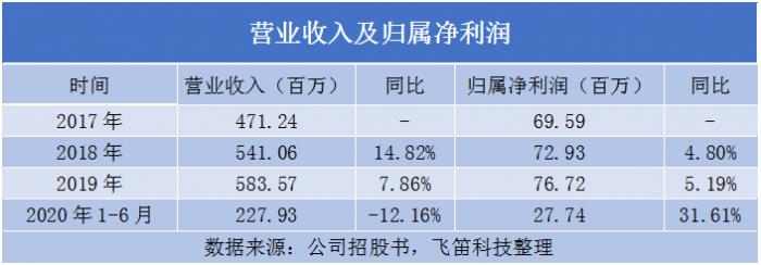 从招股书最新的数据来看,公司2020年上半年实现营收2.28亿元,同比下降12.16%,公司解释为对境内业务和境外业务的持续影响。同期归属净利润为2774万元,较之营收同比下降,公司净利润增长31.61%,主要是2020年上半年的期间费用较2019年同期下降17.39%所致。