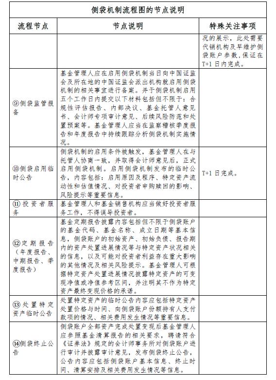 此外,《侧袋操作细则》第二十和二十一条针对侧袋机制实施期间的定期信息披露和侧袋账户资产进行处置变现时的信息披露进行了规范。