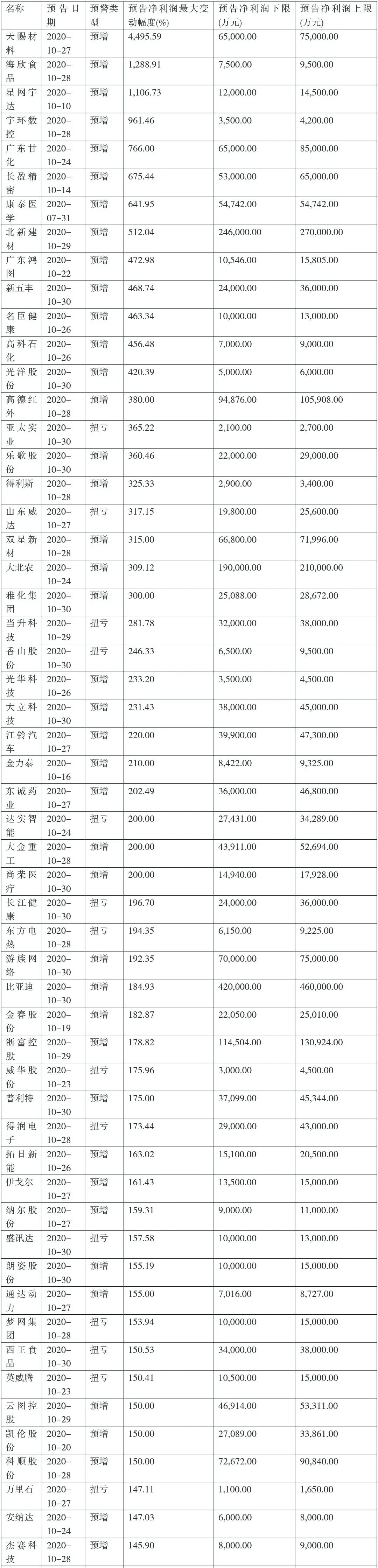 其中,35家公司全年预计业绩最大增幅,超过前三季度100个百分点。