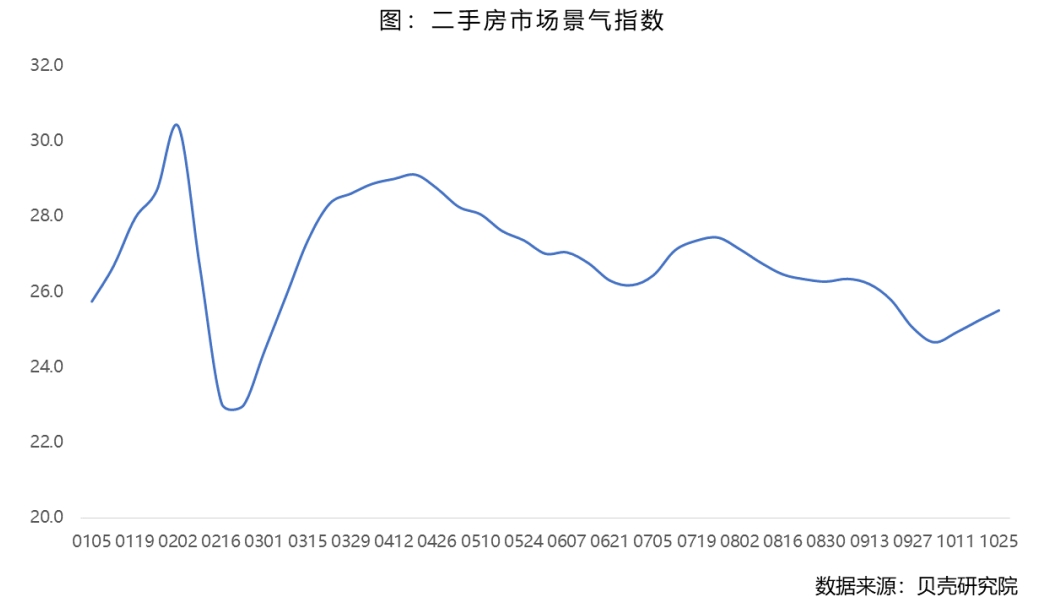 10月重点18城新增二手房带看客户数量环比增加约6%,带看房源数量环比增加约11%,处在2019年以来高位上,潜在需求仍在,且看房活跃度上升。另从市场景气指数走势看,10月以来周度市场景气度持续走高。年底市场的季节性反弹行情将开启。