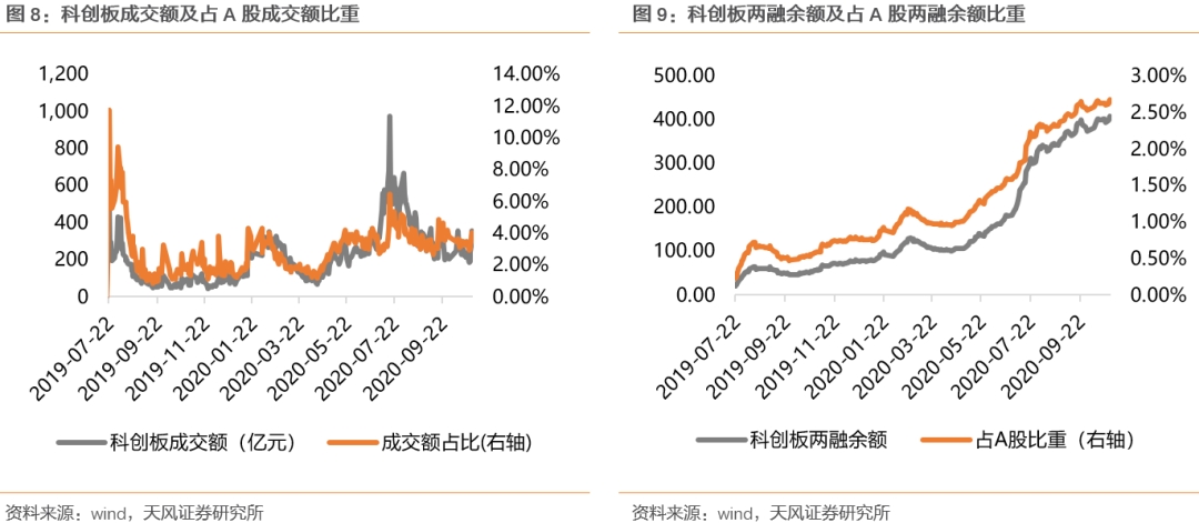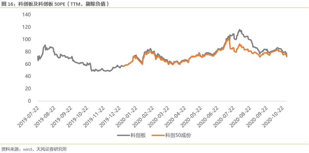 (3)市场已经提前反映蚂蚁集团的分流预期。自10月14日以来,科创50自高点下跌6.38%,而同期上证综指仅下跌3.47%,科创50指数显著跑输大盘,实际上是资金提前反映蚂蚁集团上市的分流效应,因此,蚂蚁集团实际上市后的分流冲击可能不会太大。
