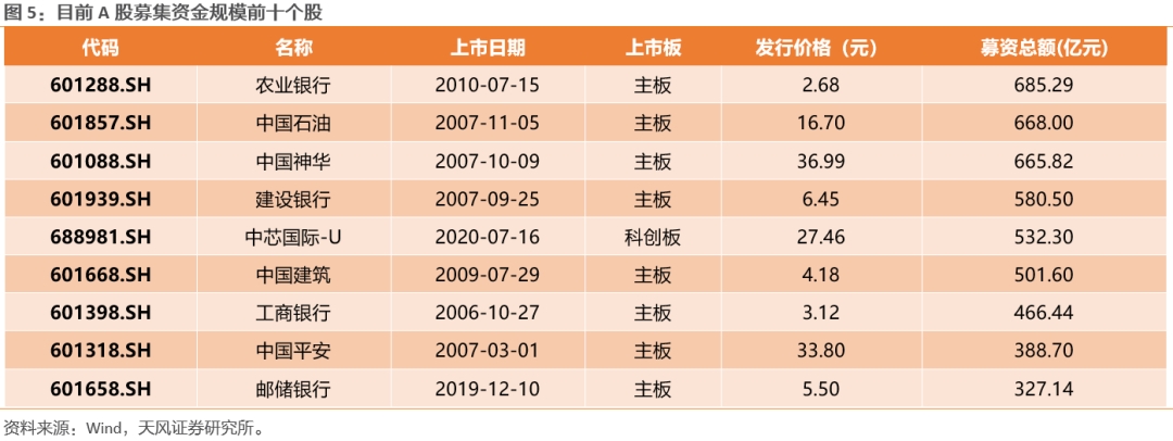 (1)蚂蚁集团实际打新规模并不大。尽管蚂蚁集团上市募集资金较高,但80%均为战略配售,打新规模预计仅为229亿元,其实小于中芯国际(战略配售50%)的打新规模266.15亿元。