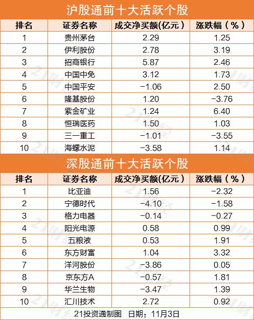十大活跃个股方面,宁德时代(300750.SZ)、洋河股份(002304.SZ)、海螺水泥(600585.SH)、华兰生物(002007.SZ)净卖出居前,分别被卖出4.1亿元、3.86亿元、3.58亿元、3.47亿元。