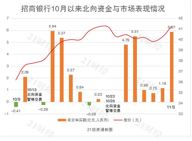 近期北向资金连续增持招商银行,10月以来累计净买入34.86亿元。