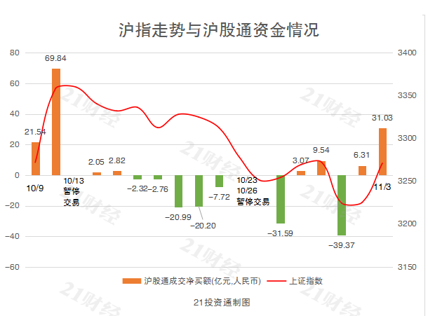 北向资金继上日净买入30亿元后今日继续净买入31.21亿元。其中沪股通净买入31.03亿元,深股通净买入0.19亿元。沪股通净买入额大大超过深股通,从行情来看,也是沪强深弱,沪指涨1.42%,深成指涨1.19%。