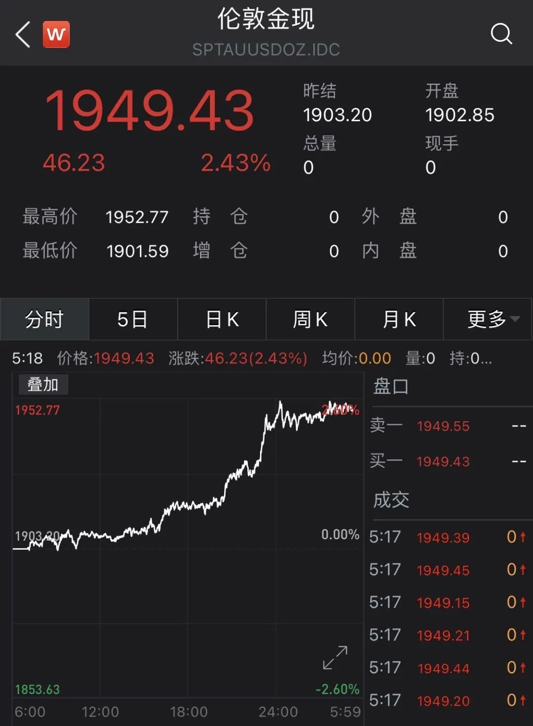 昨晚,避险资产已经开始拉升,今天凌晨,鲍威尔的讲话进一步助推了黄金、白银的上涨。