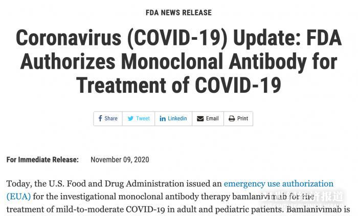 FDA授予礼来中和抗体紧急使用授权,用于治疗轻中度新冠肺炎患者