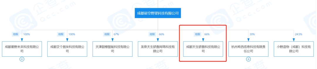 星空野望几乎是罗永浩直播业务的具象化身。企查查数据显示,星空野望对罗永浩「交个朋友专属店」淘宝店运营主体成都天生骄傲科技有限公司持股66%,后者负责主播供应链业务。