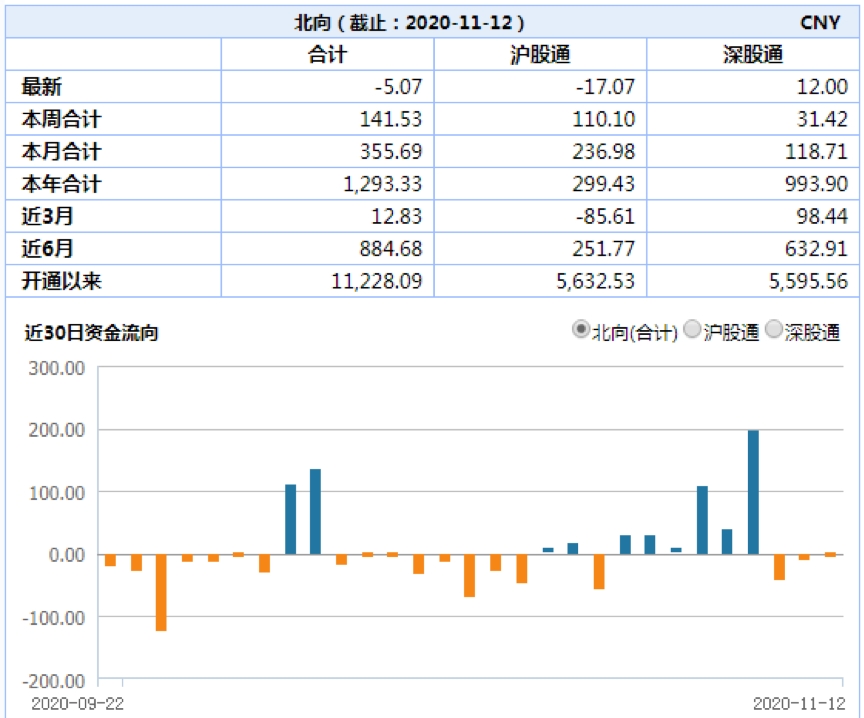 陆港通北向资金12日上午一度大幅净流入,但随后又快速流出,全天小幅净流出5.07亿元。
