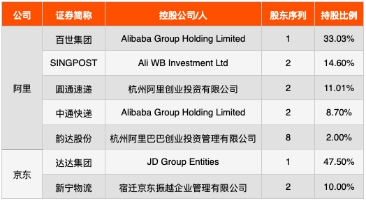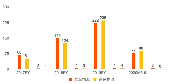 注:1、“菜鸟物流”为“菜鸟物流服务”的简称,“京东物流”为“物流及其他服务”的简称;
