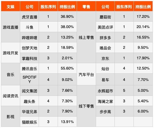 表1:腾讯参股的上市公司包含文娱行业及零售行业