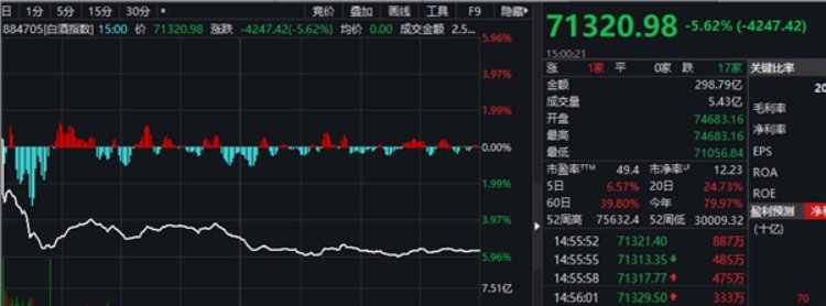 11月13日,一直强势的白酒股全线杀跌,多股出现跌停,整个板块市值蒸发近1000亿元,白酒指数暴跌近6%。