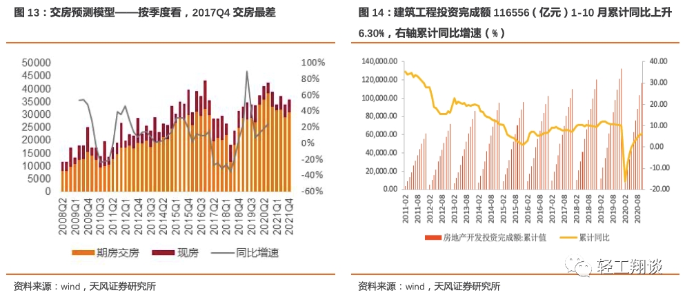 此外房屋交房前瞻指标诸如电梯产量、玻璃产量库存、家装订单、建筑投资等持续改善。根据我们交房预测模型,预计交房回暖持续周期在2年左右。