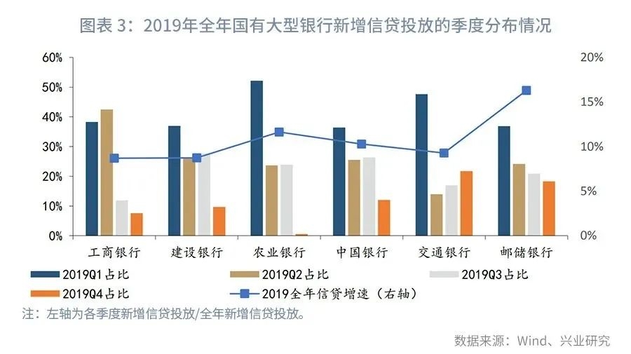 从银行业信贷投放节奏来看,当前银行业的信贷投放基本进入全年尾声,但年末时点,不同机构的信贷目标完成进度可能存在差异。 易纲行长6月18日在第12届陆家嘴论坛上曾提出“全年人民币贷款新增近20万亿元,社会融资规模增量将超过30万亿元”;根据上述目标估算,银行业已完成新增贷款投放规模的85%。不过,从个体银行的角度,信贷投放进度可能并不一致。以2019年为例,6家国有大型银行的信贷投放的节奏存在差异,2019年第四季度,工商银行、建设银行、农业银行、中国银行的新增信贷投放在全年的占比均在10%左右或更低,而交通银行、邮储银行的新增信贷投放在全年的占比达到了20%左右。2019年11月末,同样出现了部分银行进场收票,带动票据利率大幅下行的情况。接近年末时点,机构仍需密切关注年末信贷达标因素对票据市场的扰动。