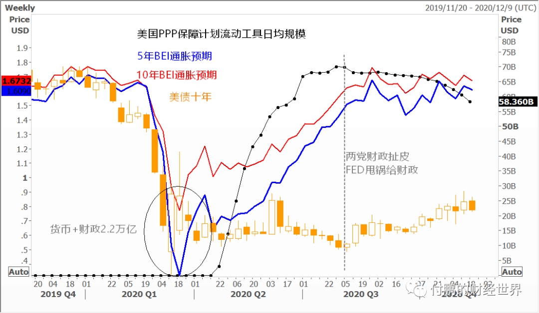 关于疫情应对的刺激这部分我就不多说了,货币政策的主要作用对于西方社会而言仅仅是用于兜住债务负正反馈带来的流动性风险,而财政则是起到主要的支撑作用,填住了断崖的收入负债的缺口,当时最为紧张的3月底,这两个维度是扭转risk off到risk on的关键;