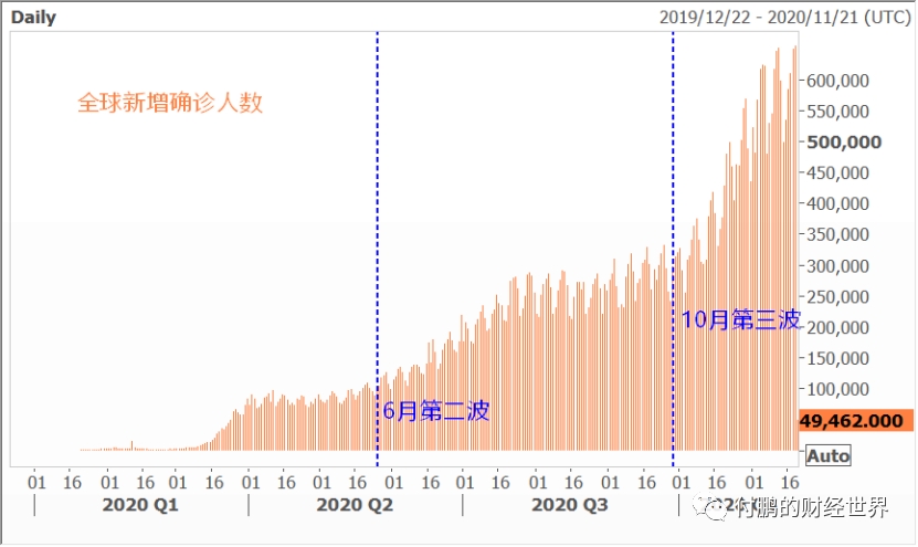图:全球新增新冠确诊人数的节奏
