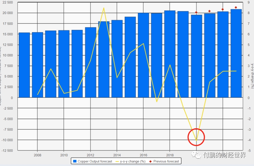 图:精铜产出预计2020年的同比增速是-4%YoY