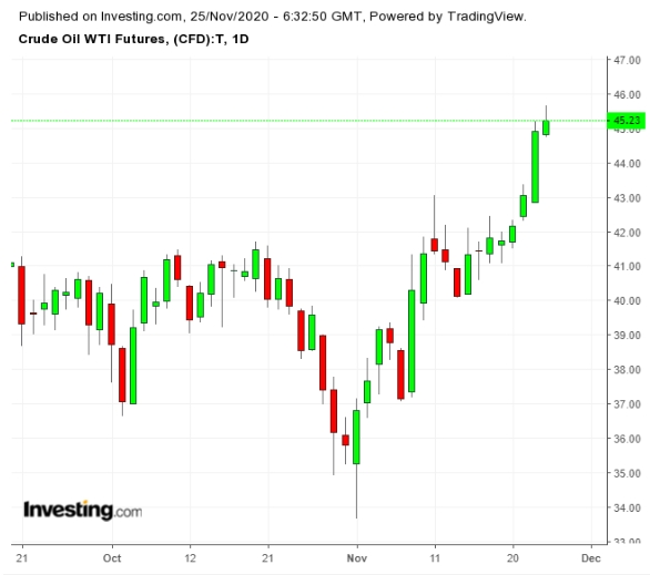 1、新冠疫苗消息:由于至少有一种新冠疫苗有望在2021年第一季度末得到广泛分发,令人们的出行方式和石油使用回到疫情前的模式,因此石油期货价格正在上涨。