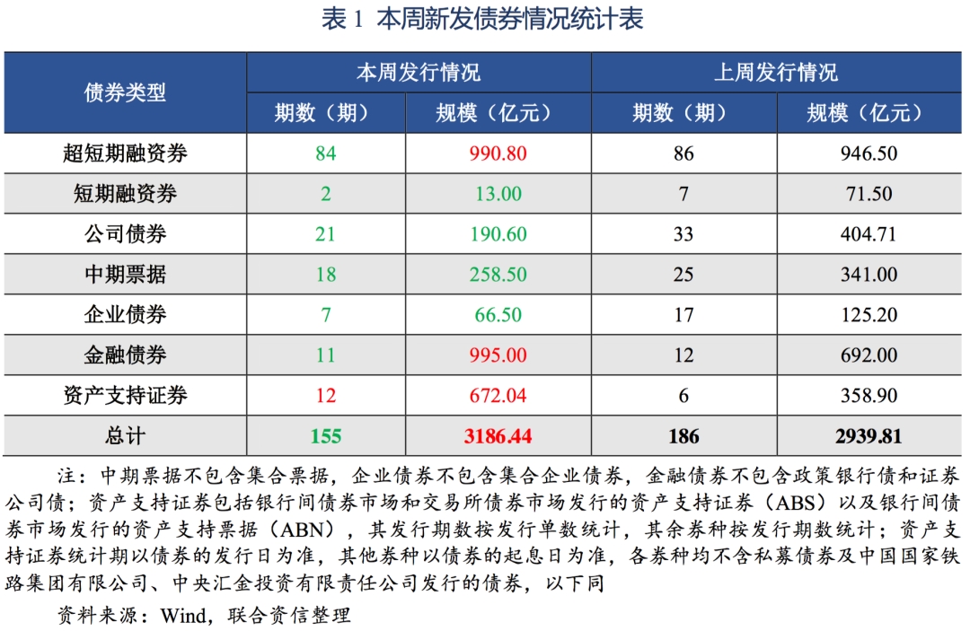 (一)本周债券市场发行期数较上周有所下降,发行规模较上周有所上升