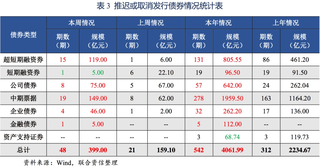 (三)本周推迟或取消发行债券期数和规模较上周明显增加