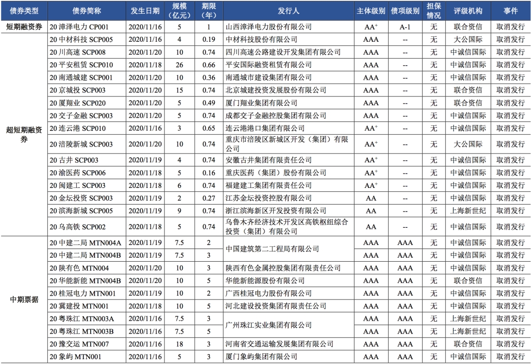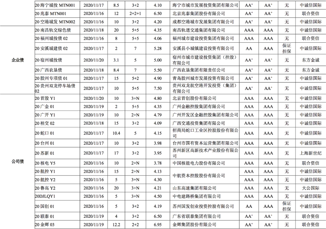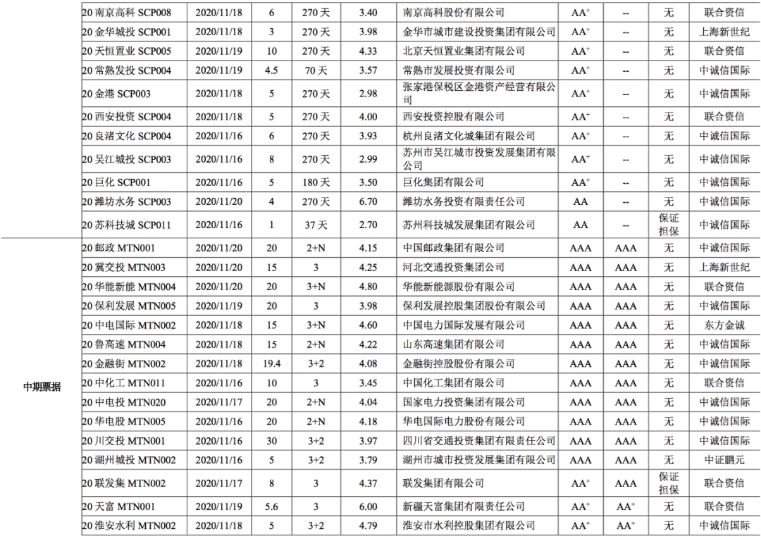 【债市】债市发行和利率走势周报(2020.11.16~2020.11.20)