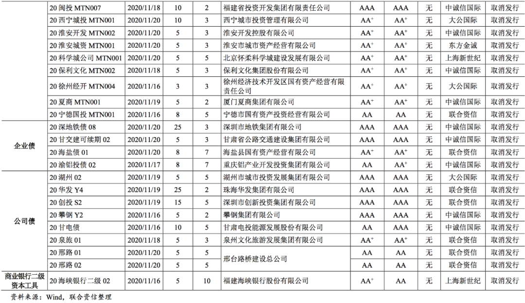 附录2:推迟或取消发行债券明细