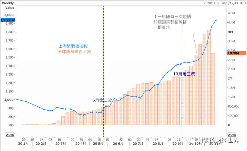 图:一波波疫情带来的都是订单的转移,中国的出口和集装箱在十一后变得更加极端