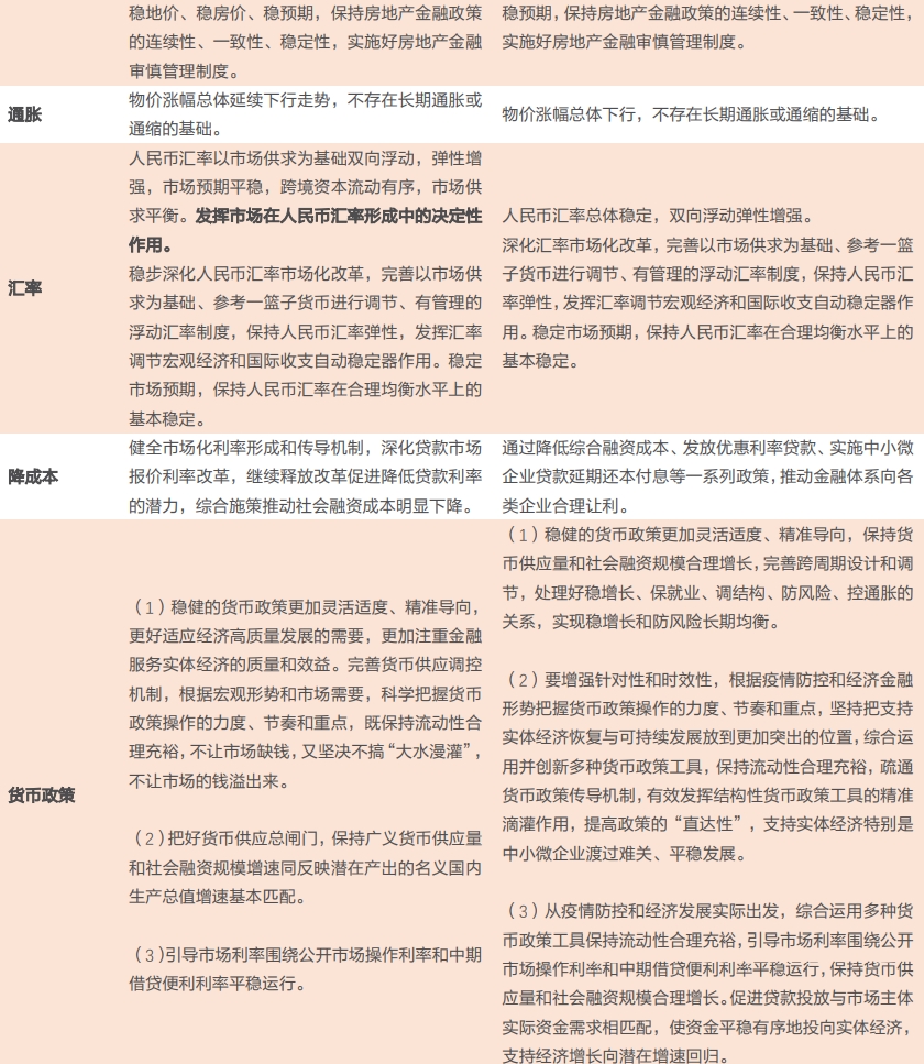 (2)货币政策:注重跨周期设计,重提“把握货币供应总闸门”和“不搞大水漫灌”。