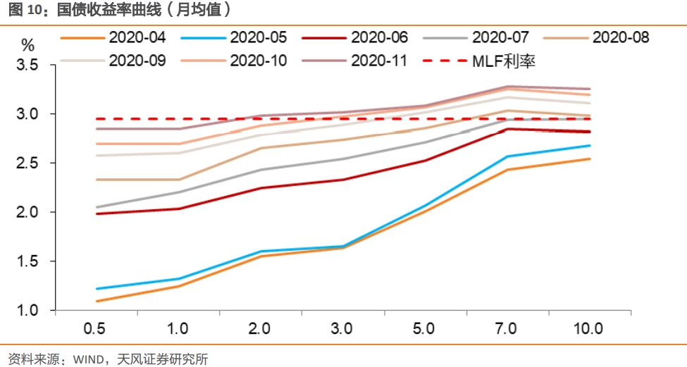 二、收益率曲线平坦化上行,1年期国债收益率较10年期上升幅度更大。